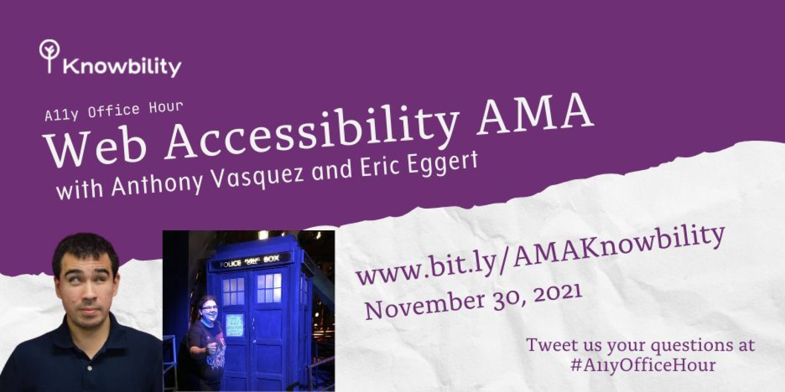 I’ll be joining my Knowbility colleague (“Knowlleague”?) Anthony Vasquez in an evening of questions and answers about web accessibility.