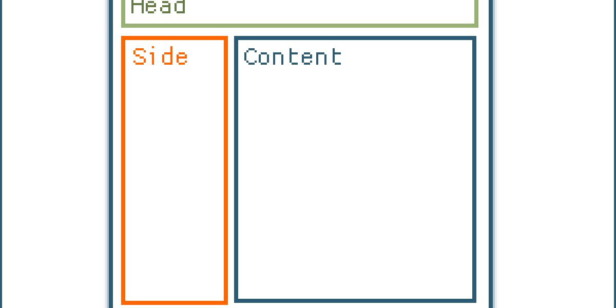 Unsere Seite benötigt natürlich jetzt noch ein schickes Layout. Zuerst einmal habe ich unser Beispiel um etwas Blindtext erweitert. Zudem habe ich die Seitenleiste (das <div> mit der Bezeichnung side) nach dem content-<div> im Quelltext gesetzt. Das sorgt dafür, dass beispielsweise bei Vorlesegeräten zuerst der Inhalt und später dann die Seitenleiste vorgelesen wird. Gerade bei langen Navigationsleisten ist das natürlich ein Vorteil (Was aber, wenn der Leser nur schnell navigieren will und nicht auf den Inhalt zugreifen? – Die Antwort folgt in einem der nächsten Teile).
